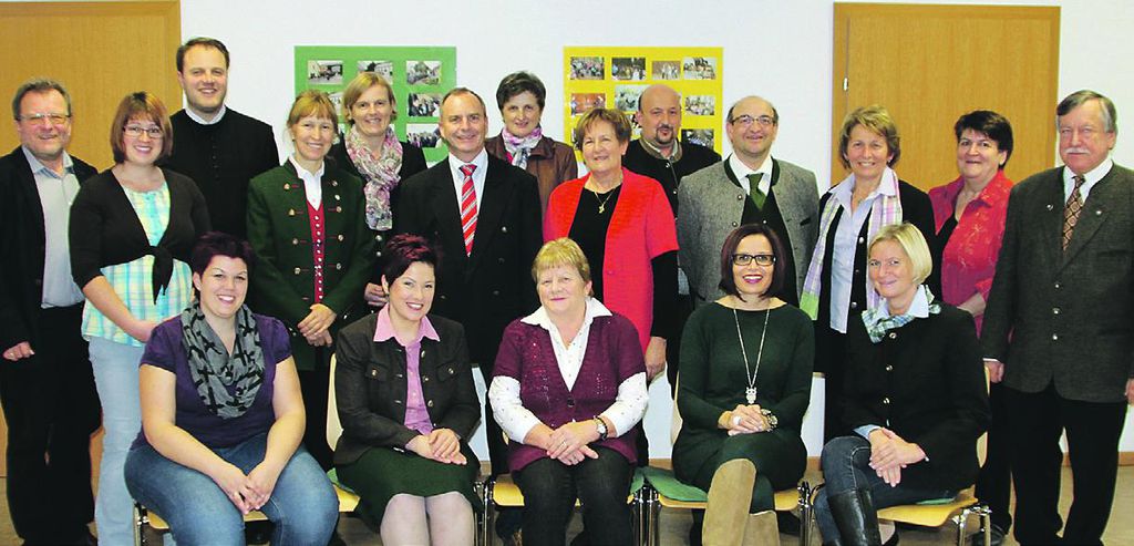 Pfarrmitarbeiter und Pfarrgemeinderat. Sitzend von links: Sabine Bachler, Ingrid König, Hermine Nachbagauer, Barbara Marchler, Katharina Moritz. – Stehend von links: Diakon Gerald Wagner, Marianne Ofner, Pfarrer P. Clemens Grill, Josefine Toblier, Gertraud Heinzinger, Franz Sattler, Margit Neubauer, Judith Gamsjäger, Siegfried Kaufmann, Roland Ebner, Veronika Wagner, Elisabeth Gamsjäger, Alois Gamsjäger. Nicht im Bild: Seelsorger P. SamuelEbner, Tanja Bichler, Pfarrsekretärin.