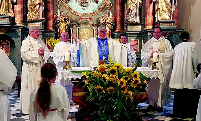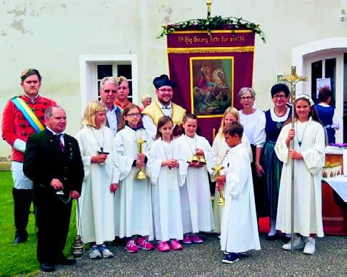 Das Fest der Aufnahme Mariens in den Himmel wurde in der Pfarre St. Georgen wegen der Covid-19 Verordnung unter freiem Himmel im Pfarrgarten gefeiert. Die Festmesse zelebrierte Ortspfarrer Administrator P. Marian Kollmann OSB und gesanglich wurde sie vom Kirchenchor unter der Leitung von Manfred Riedl und Obfrau Susanne Riedel umrahmt. Die Trachtenkapelle begeisterte bei der anschließenden Agape die Messebesucher mit ihren musikalischen Klängen. Ausgerichtet wurde der Festtag von den ehrenamtlich tätigen Pfargemeinderäten Albert Wutscher, Maria Findenig und Inge Kollmann.